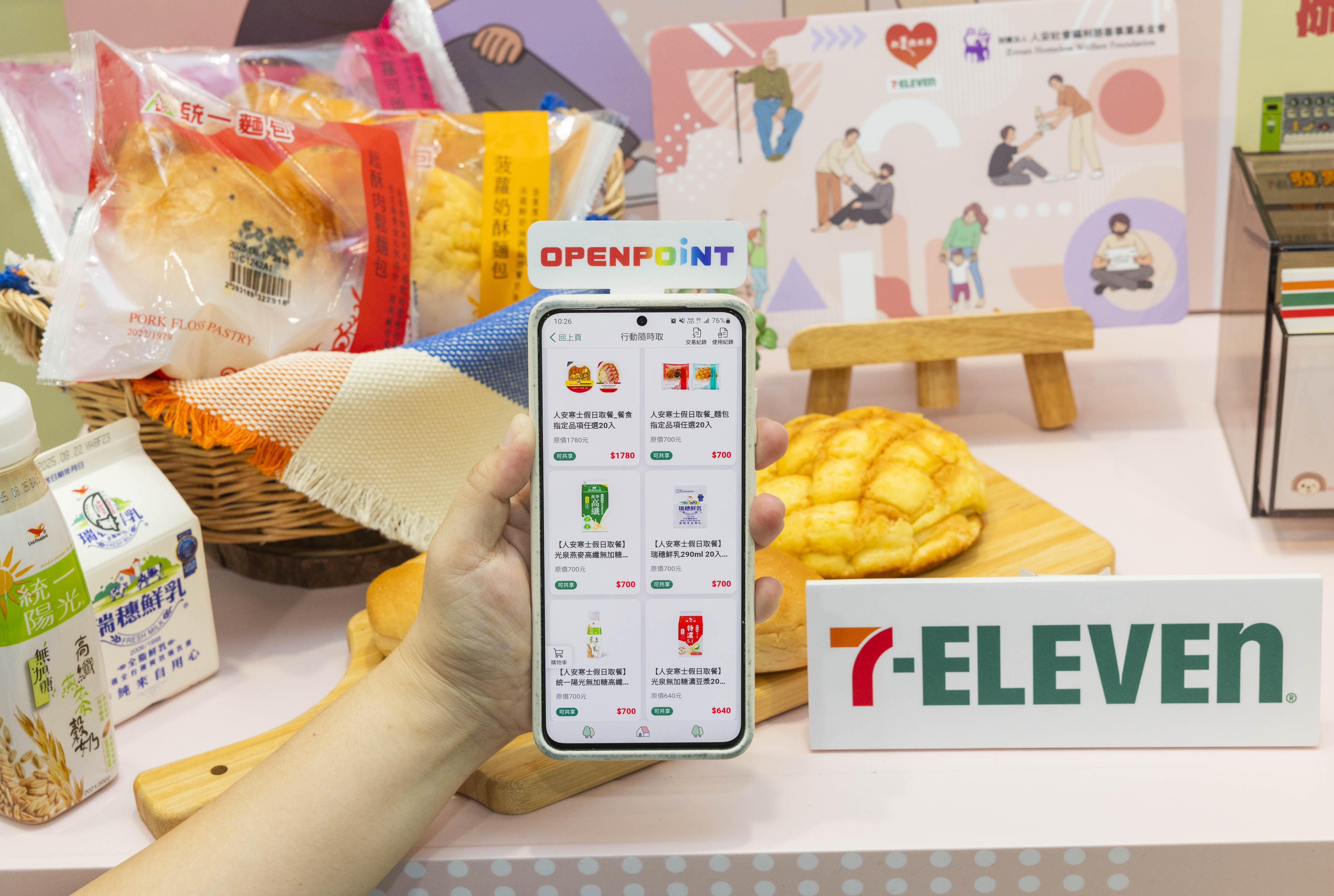 不僅如此,7-ELEVEN OPENPOINT APP積極透過公益賦能,提供公益團體更便利的公益服務。例如,「 OPENPOINT行動隨時取」行動待用餐公益賦能,公益團體於專屬賣場設定受助者可領取之一日三餐,並提供受助者icash2.0卡片,受助者即可於假日期間至指定7-ELEVEN門市取餐。另外,也首度於OPENPOINT APP線上捐款加入「線上捐物公益訂閱制」,推出「鮮乳周到」定期定額鮮乳認捐活動,從募資到物資架構結合捐款與捐物的公益訂閱制,讓公益隨手做變得更EASY!