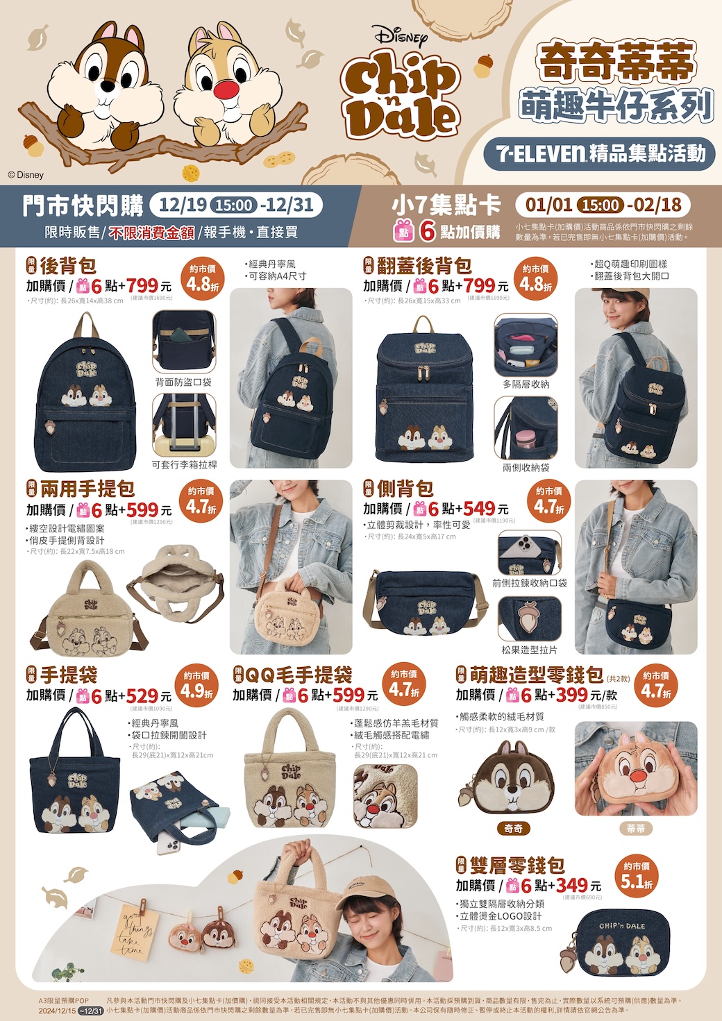 - 門市快閃購限定品項如下:自12/19(四)15:00開始至12/31(二):限量奇奇蒂蒂後背包,共1款、限量奇奇蒂蒂翻蓋後背包,共1款、限量奇奇蒂蒂兩用手提包,共1款、限量奇奇蒂蒂側背包,共1款、限量奇奇蒂蒂手提袋,共1款、限量奇奇蒂蒂QQ毛手提袋,共1款、限量奇奇蒂蒂萌趣造型零錢包,共2款、限量奇奇蒂蒂雙層零錢包,共1款,前述商品皆含「限量門市快閃購+限量集點送兌換+備品」。