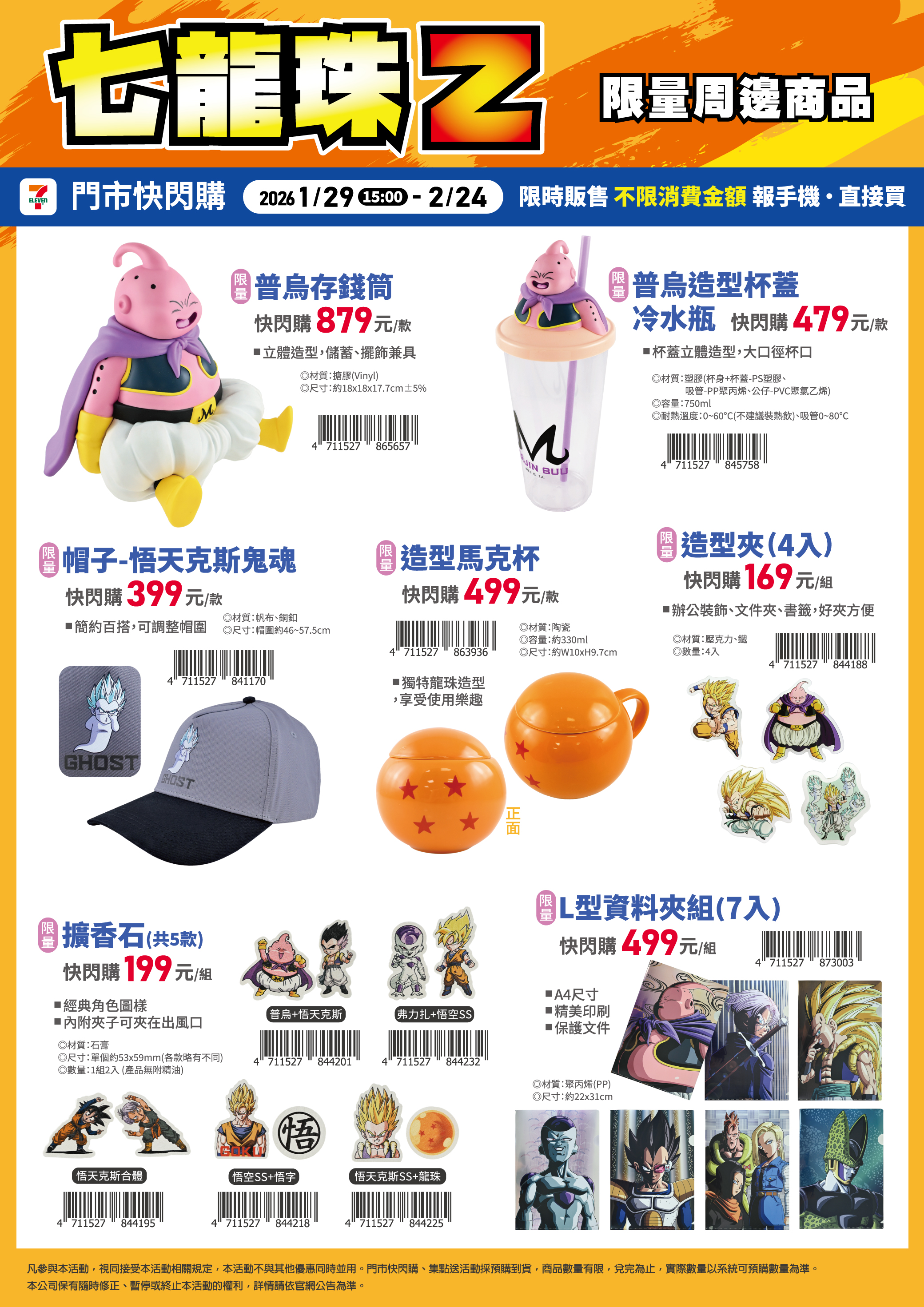 - 門市快閃購活動期間:2026/01/15-2026/01/25、2026/01/15-2026/02/24,uniopen會員至7-ELEVEN門市單筆不限金額消費,結帳時報會員手機號碼,即可享限定商品加價購。