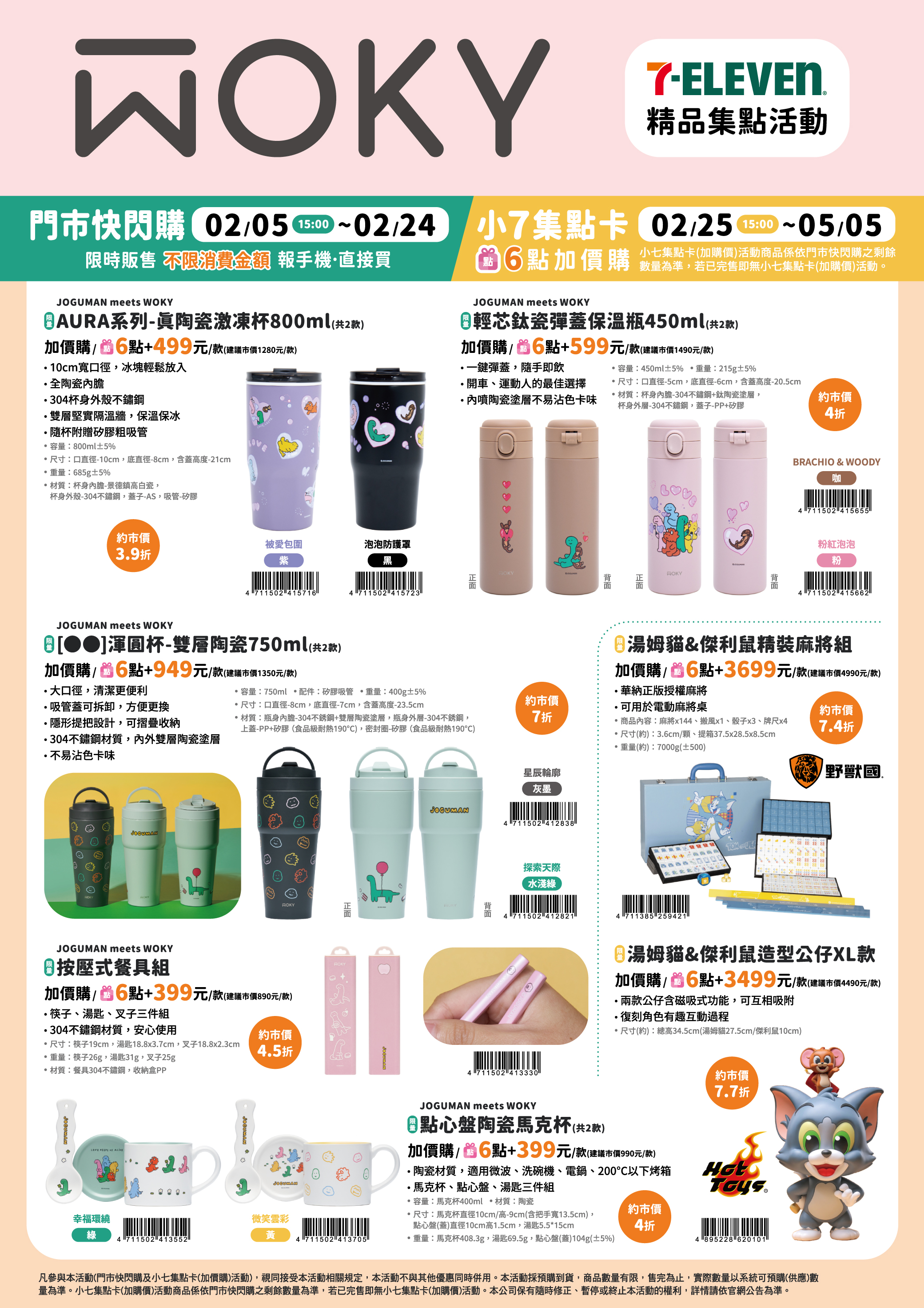 - 活動期間2026/02/25-2026/05/04,兌換至2026/05/05,指定活動贈品/商品皆數量有限,換完/售完為止,實際銷售數以系統可預購數量為準。