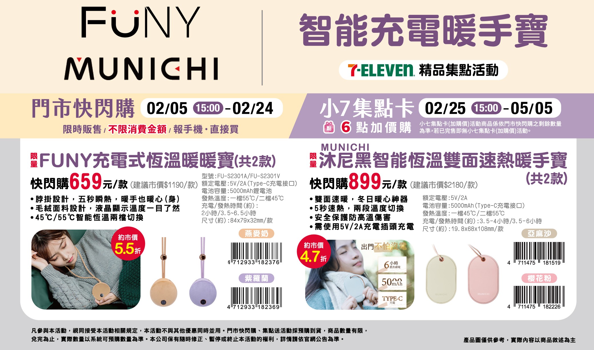- 門市快閃購限定品項如下:自01/15(四)15:00開始至02/24(二):限量隨身K歌精靈,共2款,前述商品皆含「限量門市快閃購+備品」。