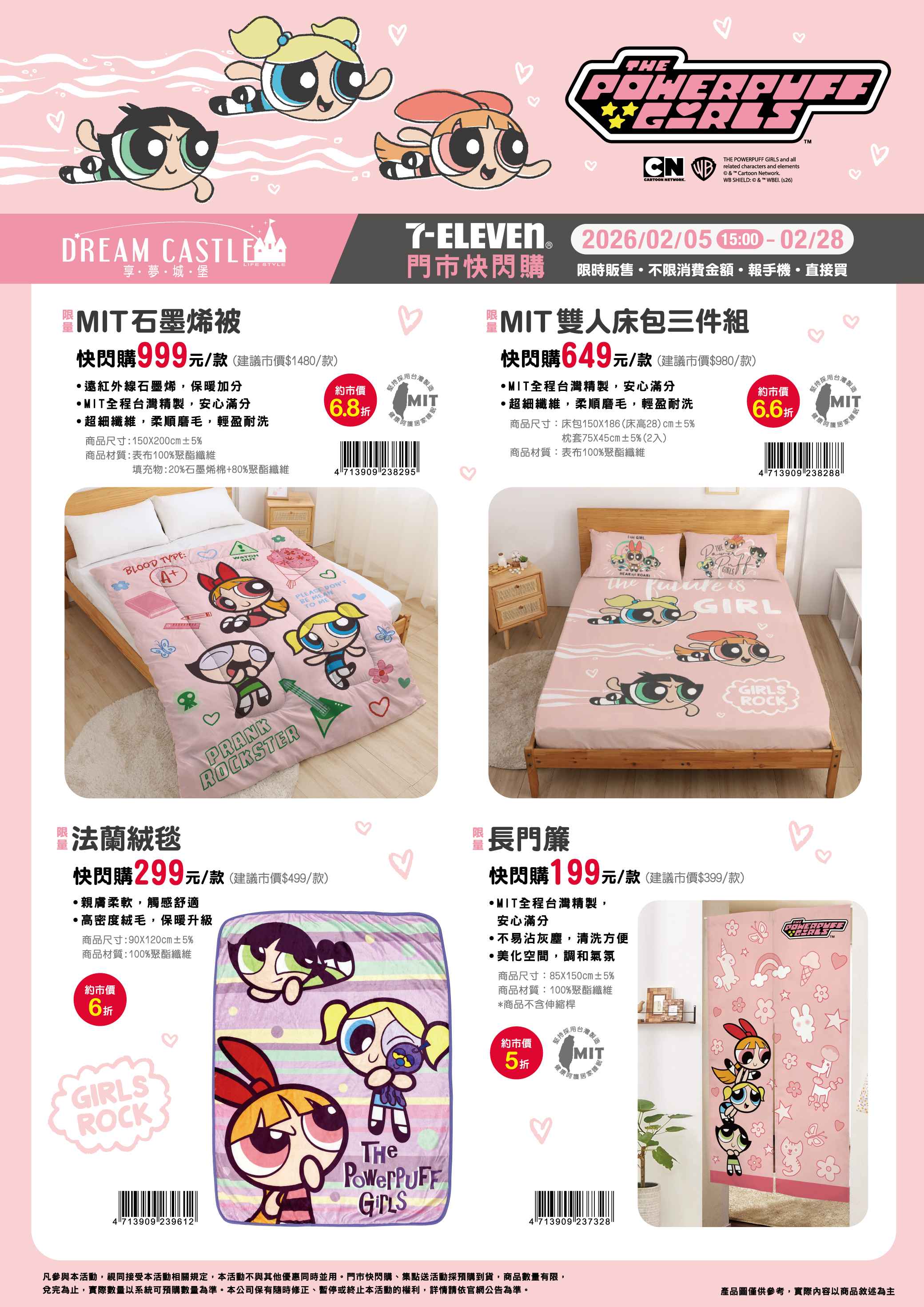 - 下列商品,自01/19(一)15:00開始:限量古典手繪出芽小枕,共3款、限量微春饗宴靠墊,共3款、限量湖區初雪日式童被,共2款、限量大不列顛保暖毯,共1款、限量碳原美學石墨烯遠紅外線冬被,共2款、限量日光光譜遠紅外線被,共3款、限量黑科技可水洗石墨烯被,共1款、限量二重紗透氣床包被套枕套組,共3款、限量軟呼呼四重紗多用途蓋毯,共4款,前述商品皆含「限量門市快閃購+限量集點送兌換+備品」。