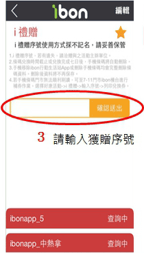 從ibon APP輸入i禮贈序號取得條碼(4/1開始使用)