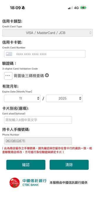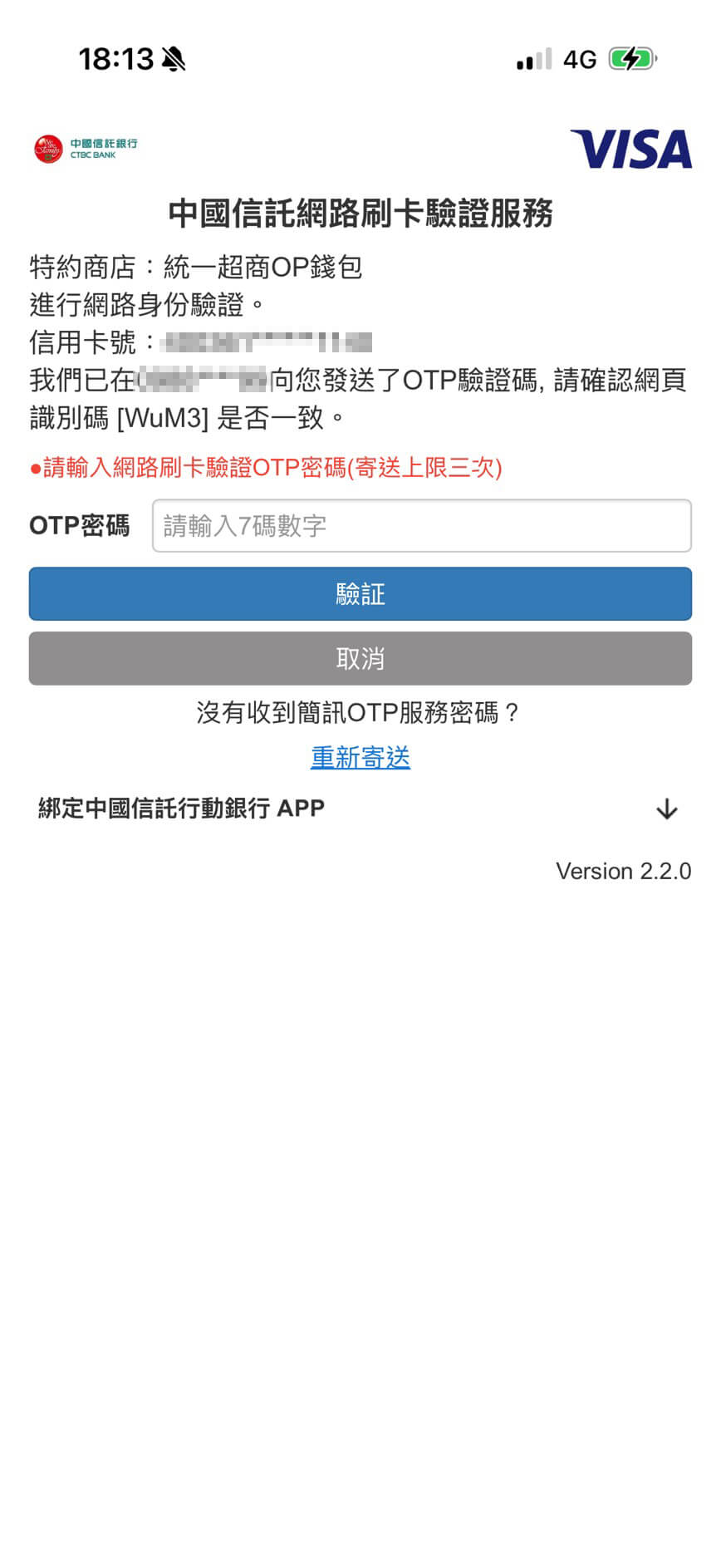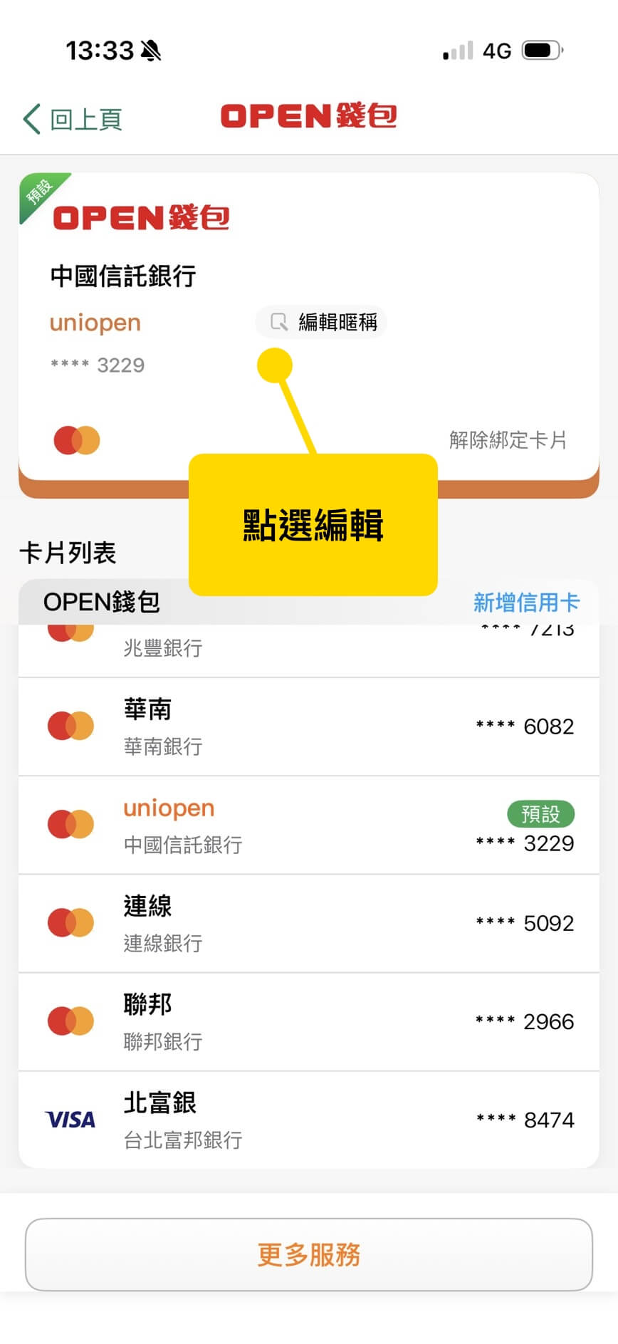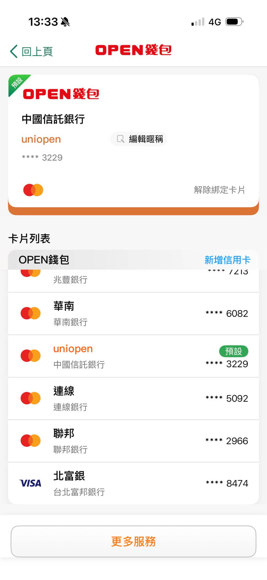 *一個uniopen會員帳號最多可綁定20張信用卡。