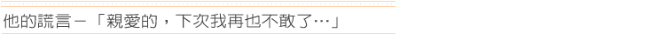 | 工作。雖然先生幾次都保證會再站起來重新出發,但始終沒有任何起色,惠娟只得忍氣吞聲地繼續隱忍著,並告訴自己總有一天情況會好轉;可是一年一年地過去了,這樣的希望始終沒有實現。