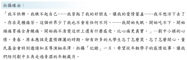 ◎ 支持憂鬱青年向陽計劃就可獲得【記錄】一片